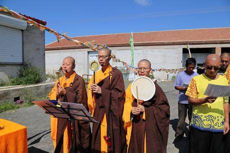 華聖寺僧眾及七眾弟子、內蒙當地善知識舉行了“放生法會”,為羊群授皈依、唱誦《大悲咒》、佛號,懺悔罪業,為物種們植入學佛修行種子,永斷六道生死輪迴。