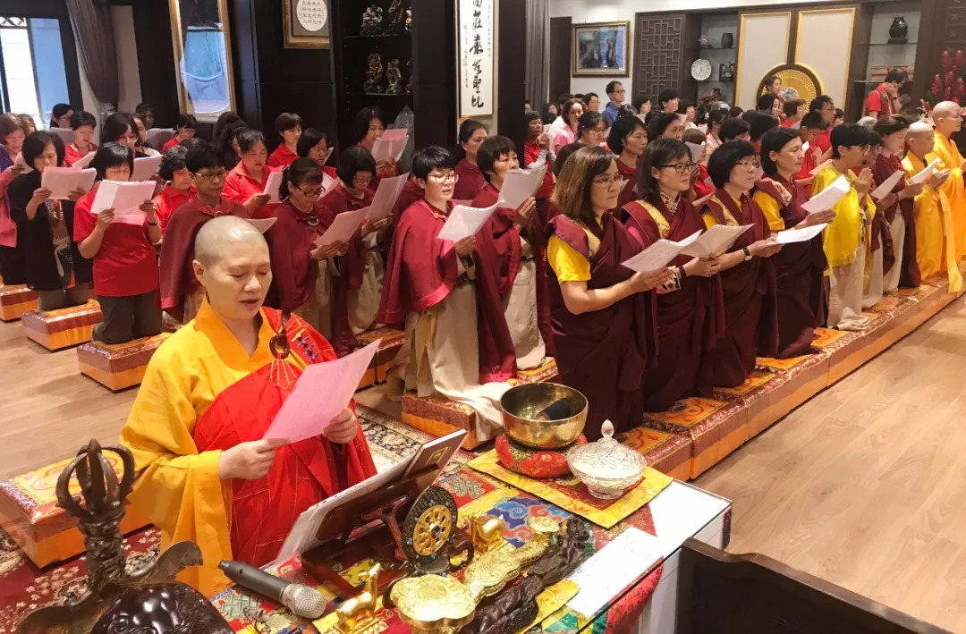 來自各地四眾弟子盛裝齊聚還願精舍,虔誠誦經禮拜,共生法喜,同霑佛恩。