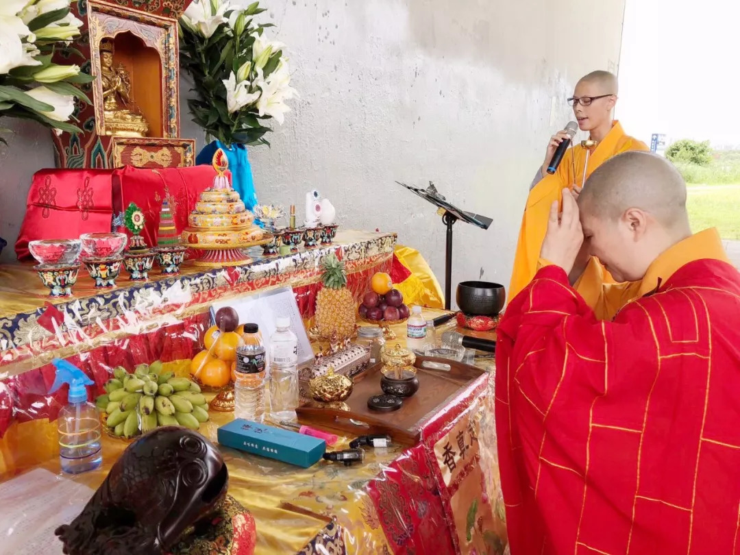 上人率眾為即將被放生的物種懺悔罪業、授三皈依、灑淨、施法水加持。