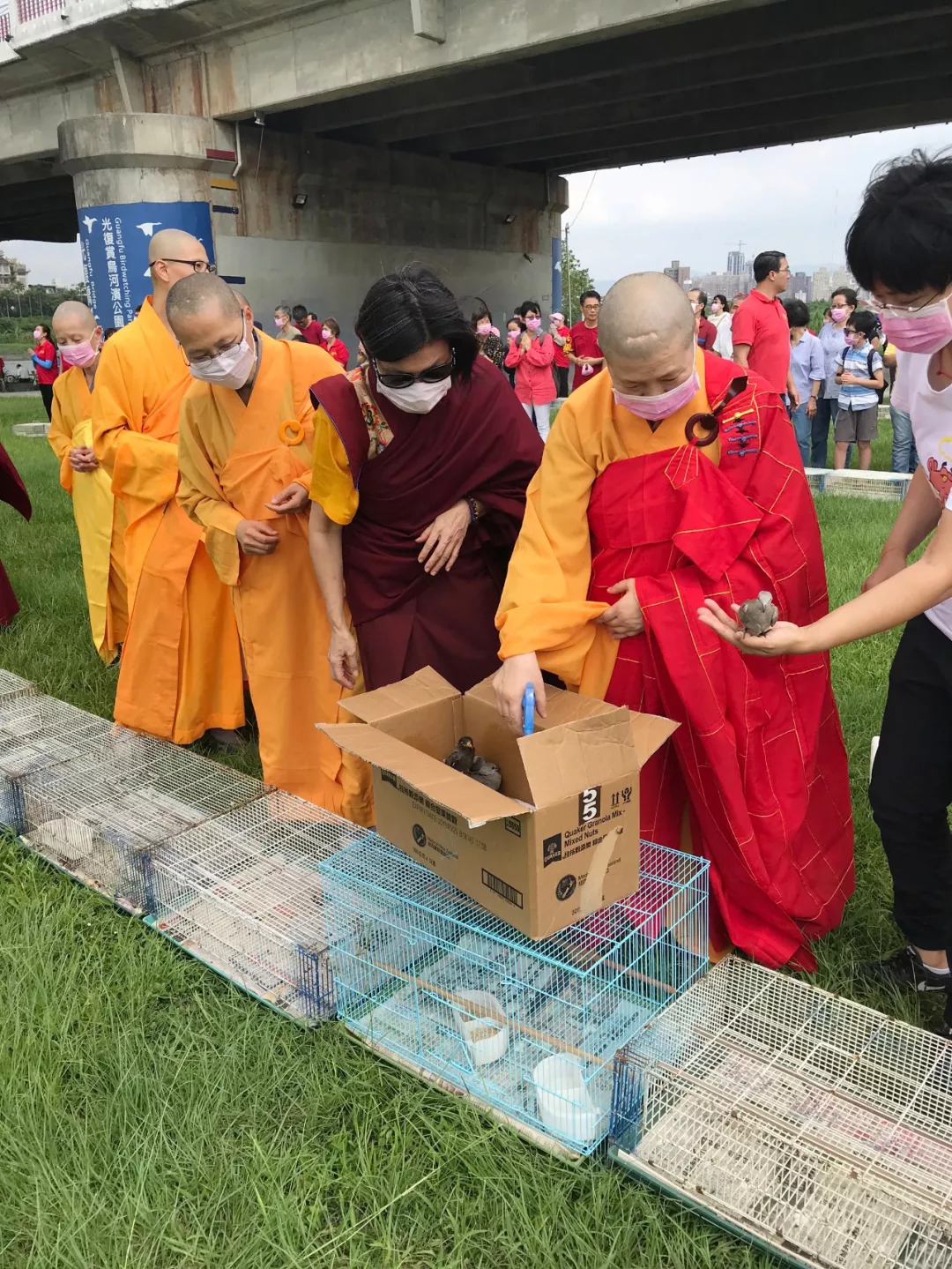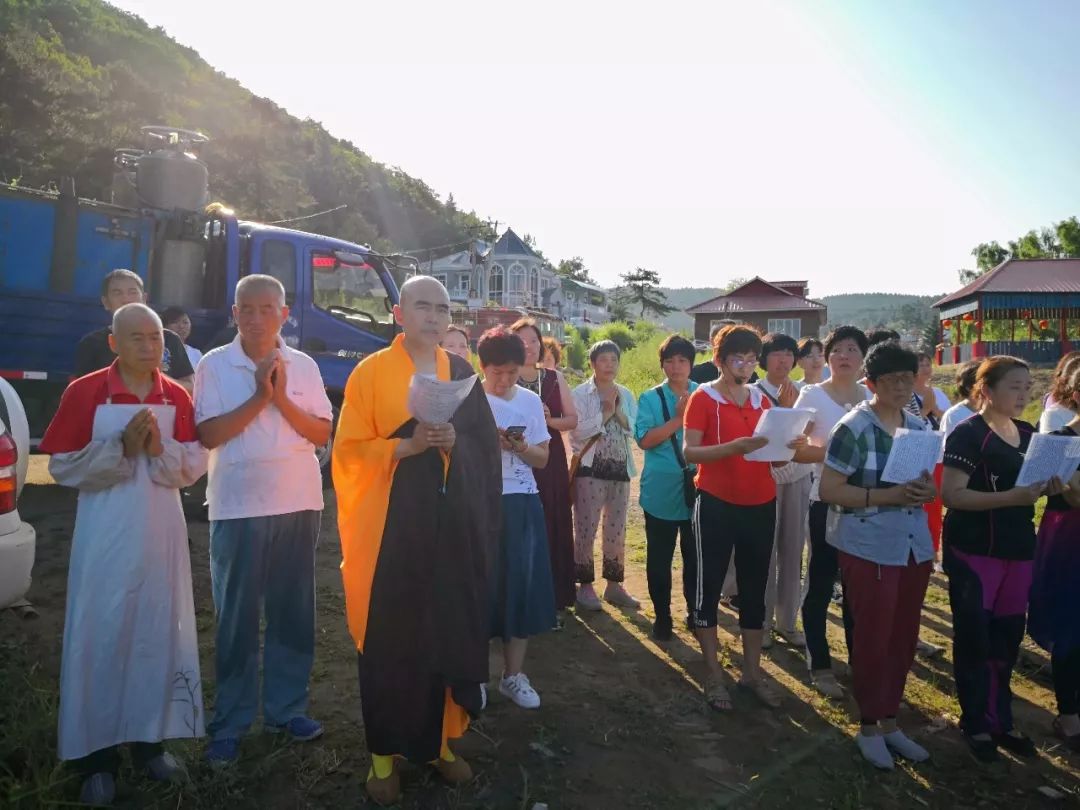 所有佛弟子以無比虔誠恭敬的心, 遵奉 佛陀慈悲利生教導,以及感念 南無觀世音菩薩救度眾生大悲恩德。也祈請諸佛菩薩、諸天護法,護佑這次放生行動,「聚眾飛鳥(魚蝦)得解脫、翱翔天空(暢游大海)宣善行、大悲加持諸有情」。祈福放生法會圓滿,回向所有參與法會的佛弟子及眷屬們,及法界一切眾生吉祥滿願、了生脫死、早證菩提。也祈願地方昌隆、國泰民安!