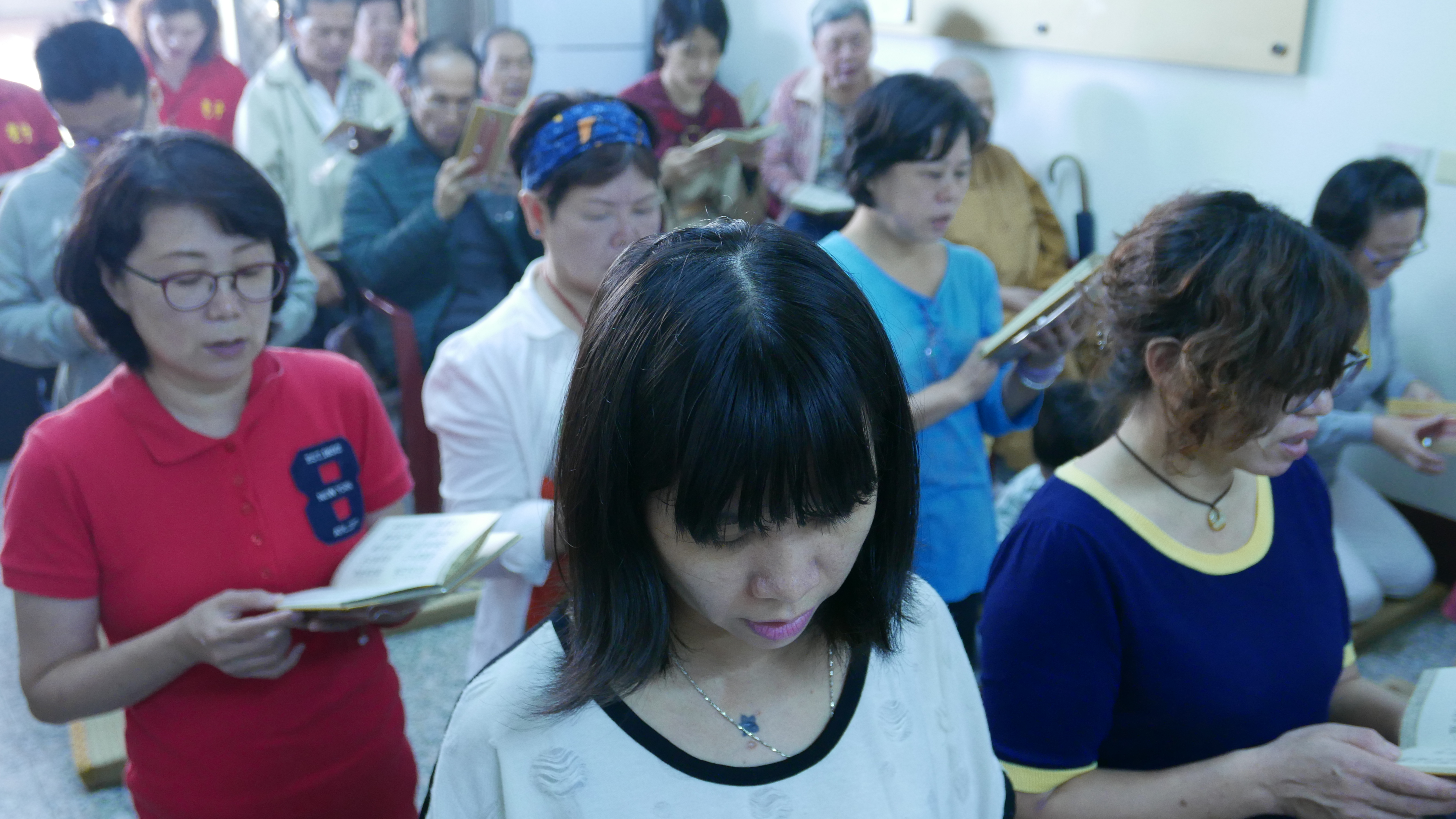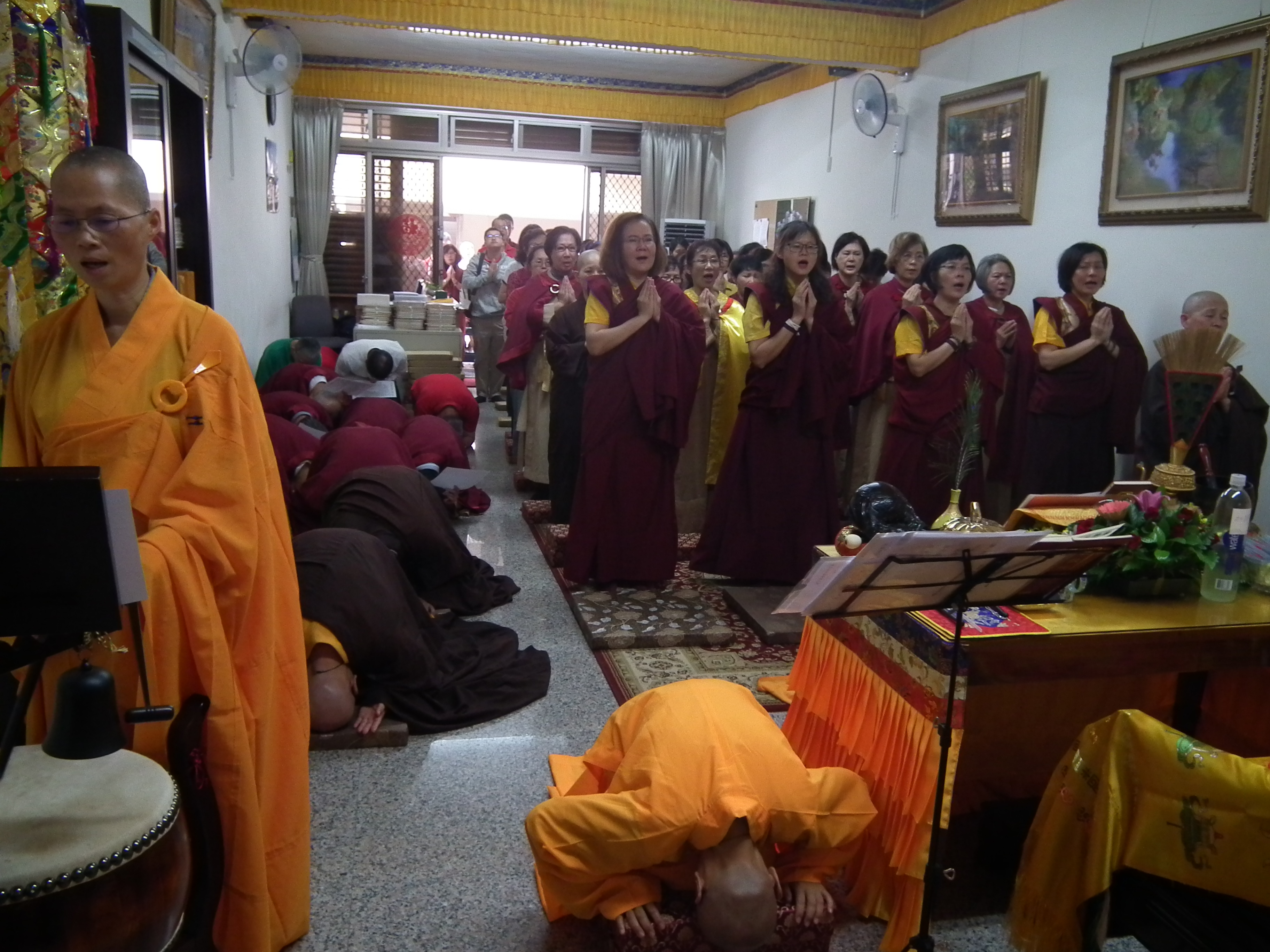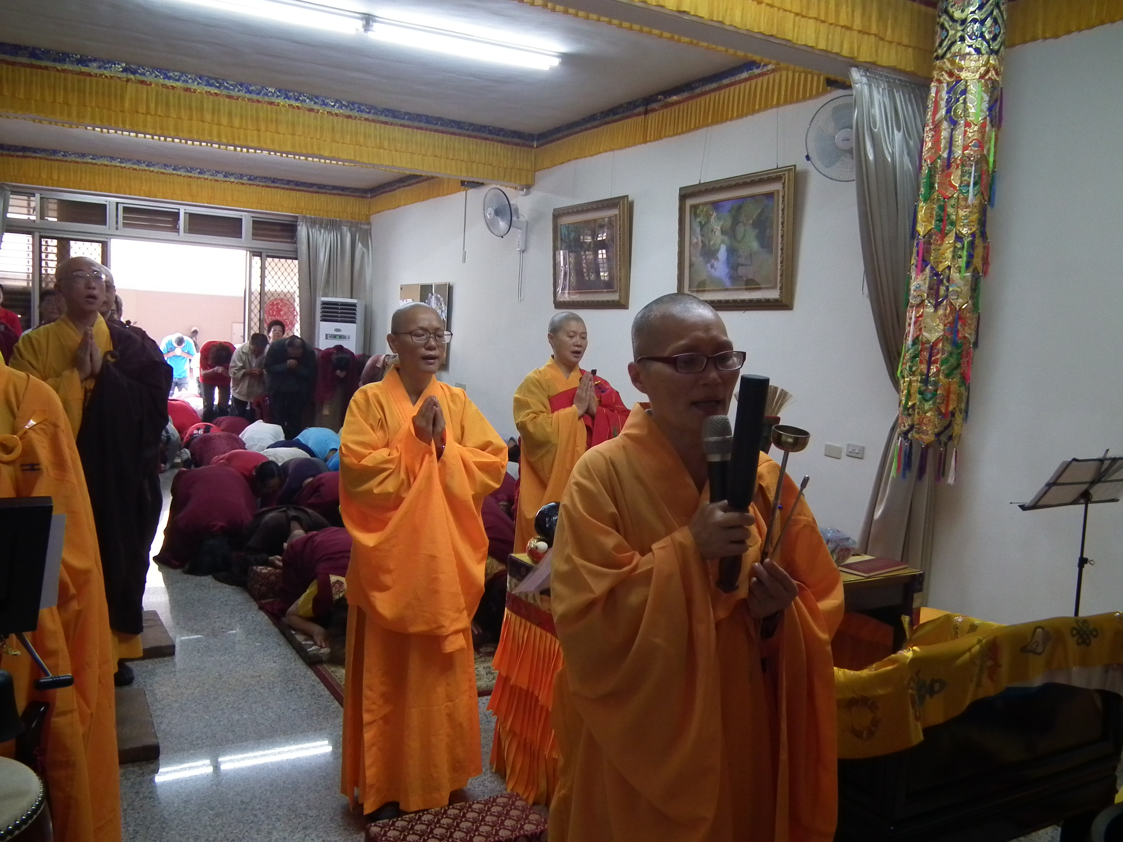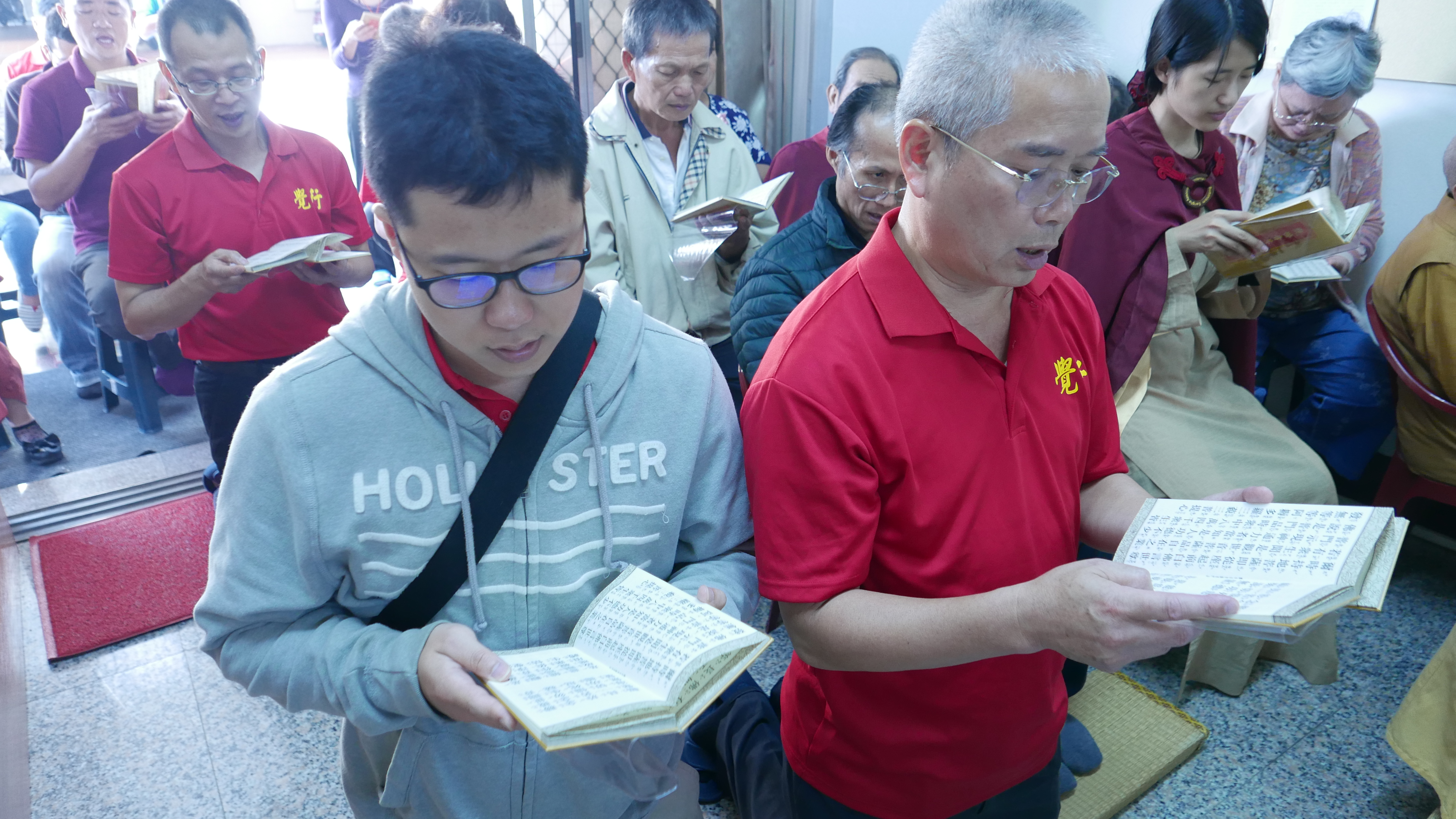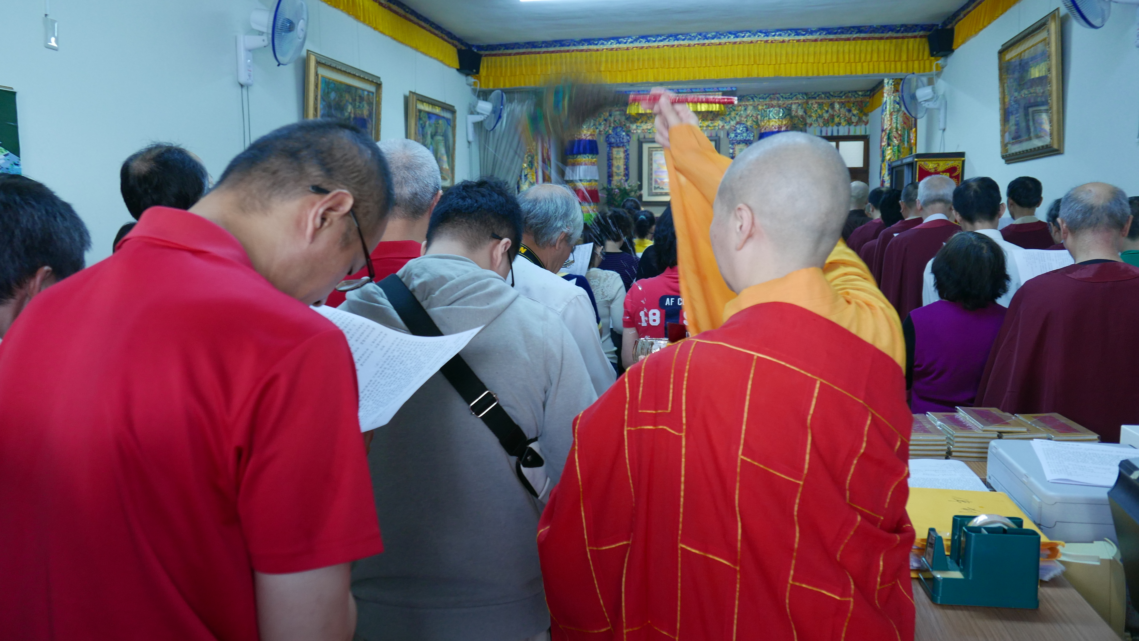 會場滿滿的與會師兄姐恭敬虔誠,主法聖德上人領眾恭誦《妙法蓮華經觀世音菩薩普門品 》,法喜受用滿滿。