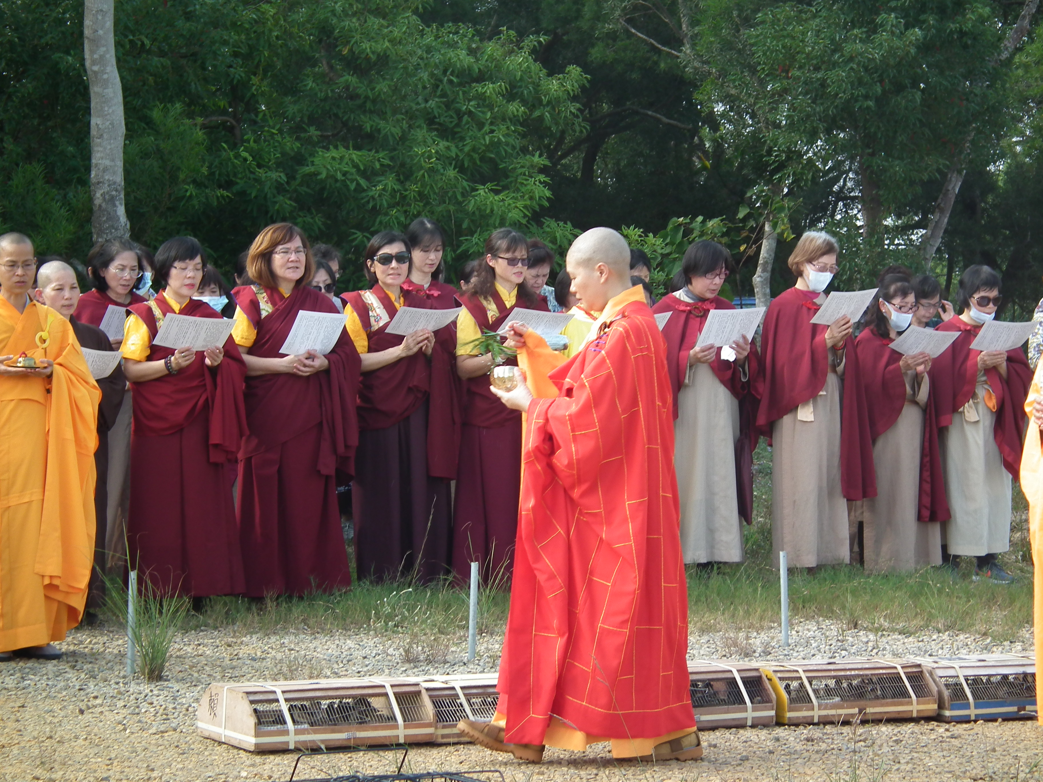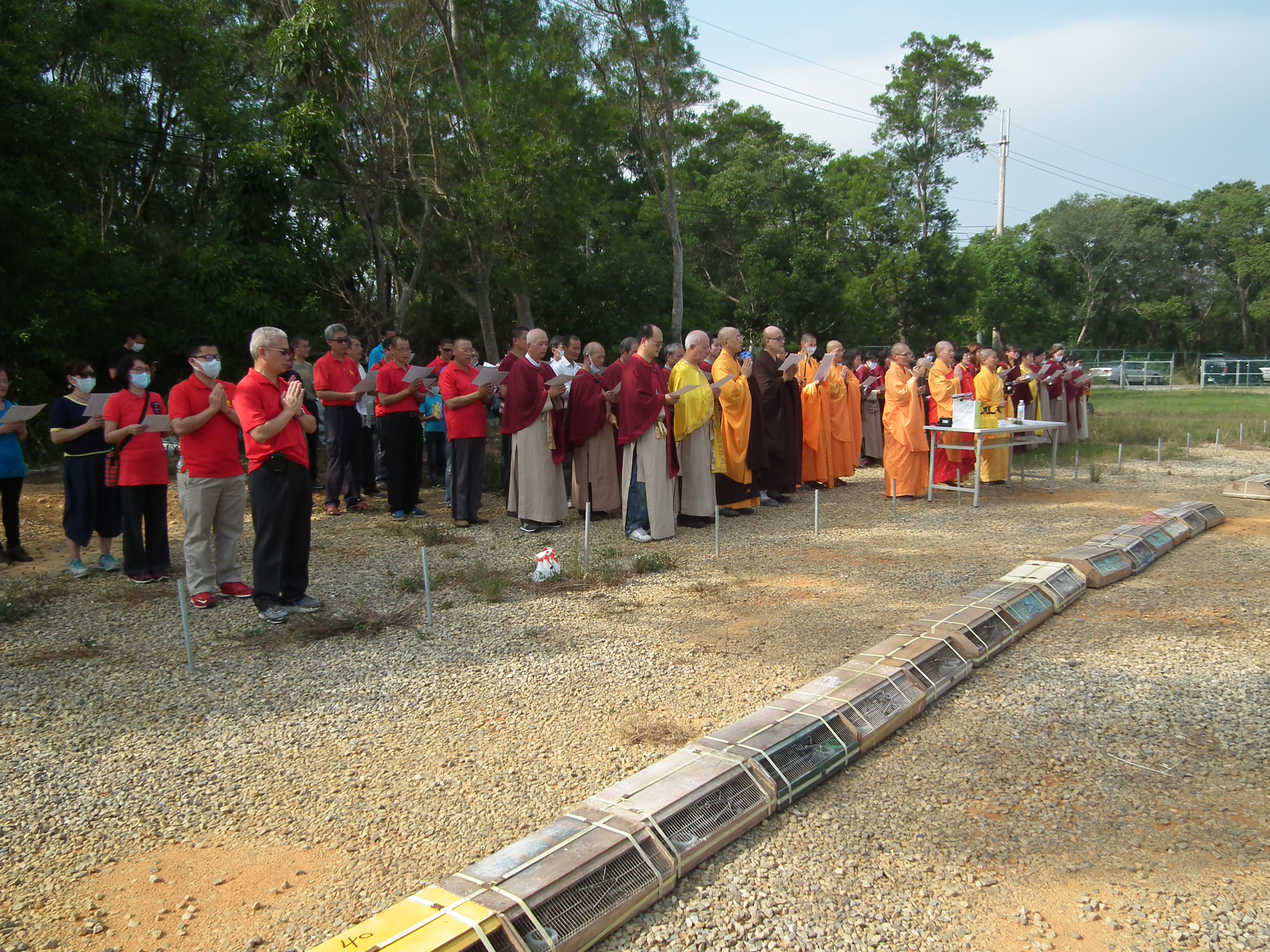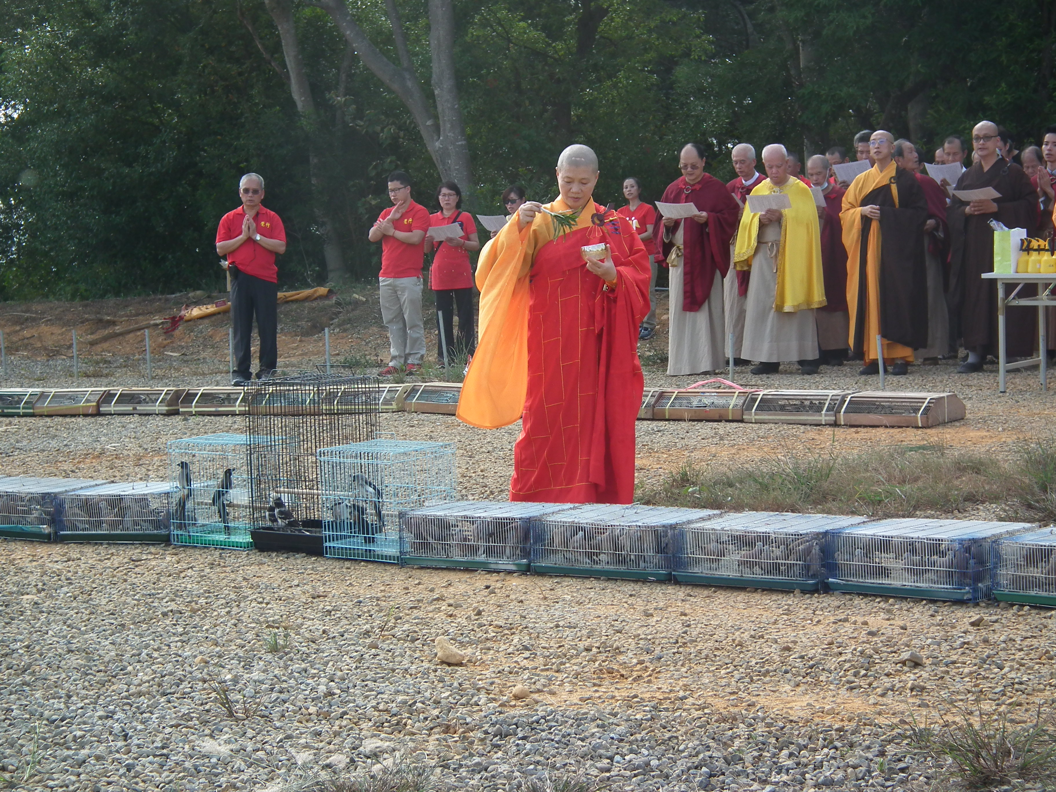 六道輪迴下三道之苦無邊,今為物種舉行三皈依及念佛持咒,祈願物種們今生報盡,可以為他們種植學佛修行種子,永斷六道生死輪迴,也為自己滅罪消愆,積累福善。同時我們也留意物種在寺地可棲息,當地林相豐富,物種可在此安居,不會影響生態。
