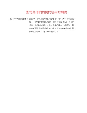 聖德高僧們對提問答案的綱要 第三十四道綱要: 南無第三世多杰羌佛是佛史上唯一被世界各大宗派領 袖、大活佛們認證的佛陀,不是祖師派別某一宗派的 教法,也不是密乘、大乘、小乘的獨有一乘教法、對 所有佛教的各乘各宗各派一律平等,是與釋迦牟尼佛 教理同流體系,純正的佛教佛法。